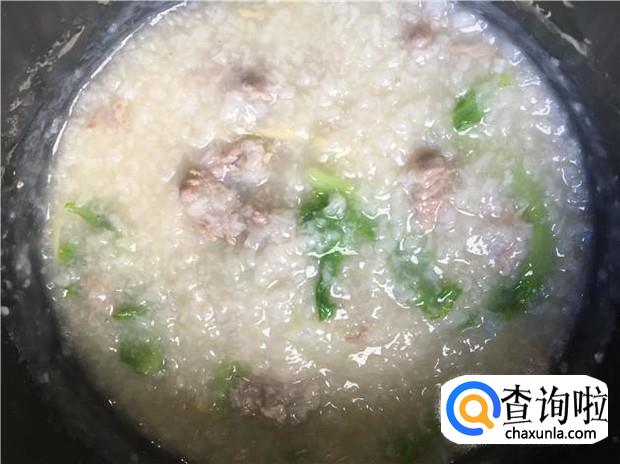 最后加入少许的盐调味,一碗热腾腾的青菜瘦肉粥就做好了。