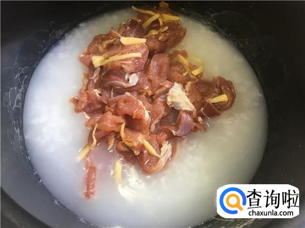 锅里先煮开一锅白粥,粥煮开后,把腌制好的收入倒入锅中,搅拌均匀,再次把粥煮开。