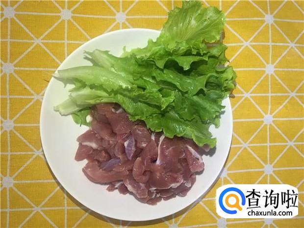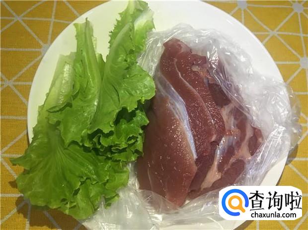 瘦肉清洗干净,切成薄片;生菜清洗干净,沥干水分,备用。