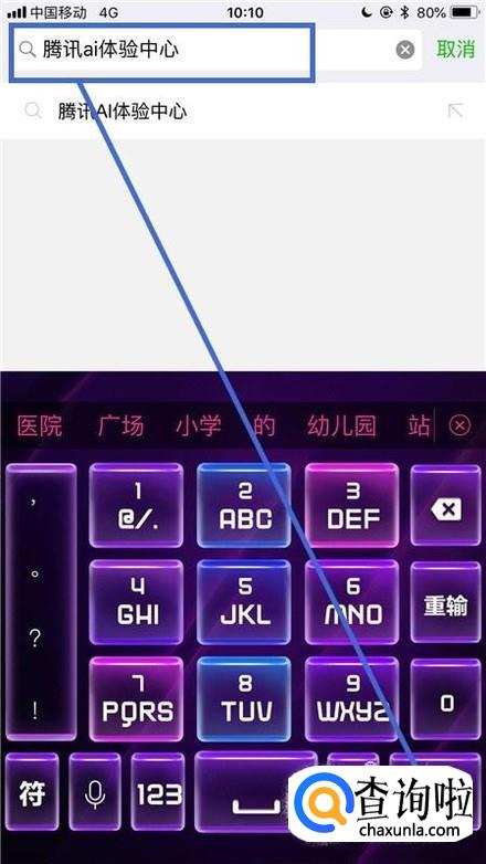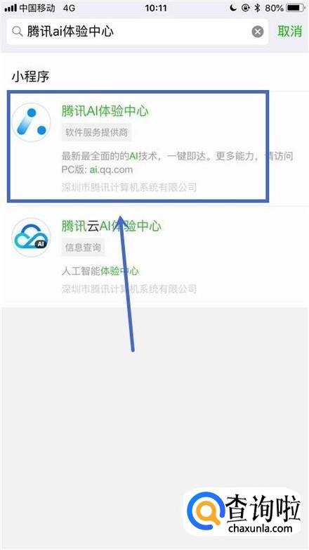 然后输入腾讯ai体验中心并点击搜索,如下图所示。