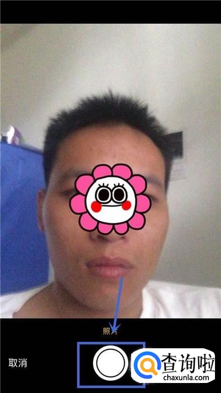 然后对着自己的五官按下拍摄按钮,如下图所示。
