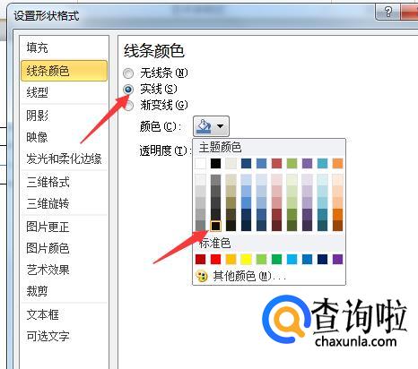 双击插入的直线,就可以直接修改直线的属性。颜色修改为【黑色】,线条宽度修改为【1磅】。