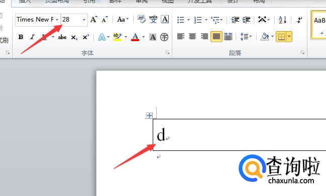 然后在表格中输入一个拼音d(或者其他能占两行的拼音,这样方便后面划线),输入后,将字体大小设定为28.。