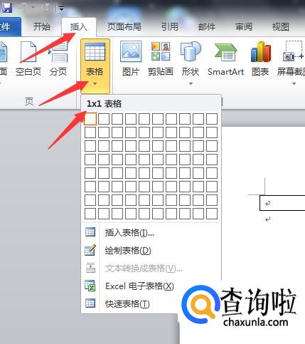 进入文档后点击【插入】,再点击【表格】,选择一个【1x1】的表格。