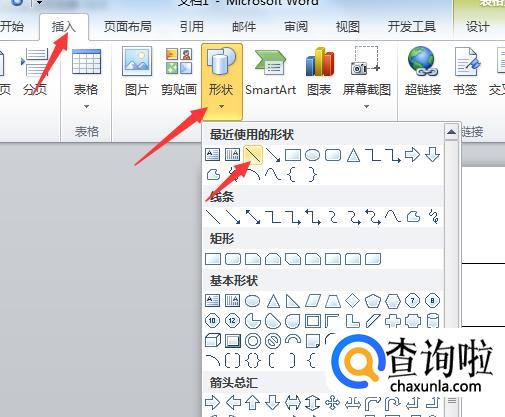 然后我们点击【插入】,点击【形状】,再点击【直线】。