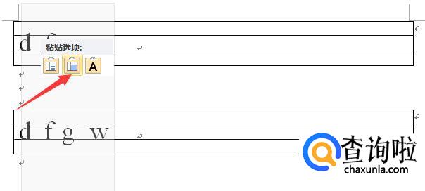 这样我们就可以开始插入直线,根据表格中需要占上中两格的拼音,将直线插入到合适的位置即可。注意直线的插入位置,使得三格大小一致。