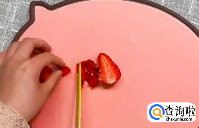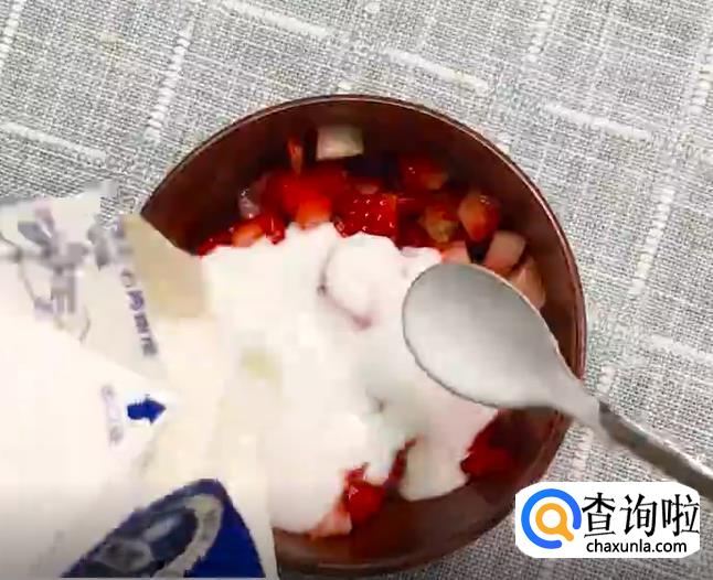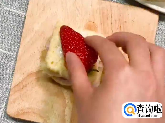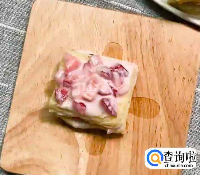 之后吐司打底铺上草莓酸奶,依次多盖几层。