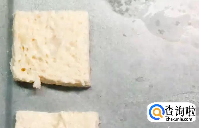 接着将吐司放入烤箱,预热180度烤十分钟。