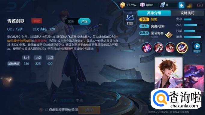 今天小编给大家介绍的是王者荣耀中李白的技能连招和他的技能,希望对大家有所帮助。