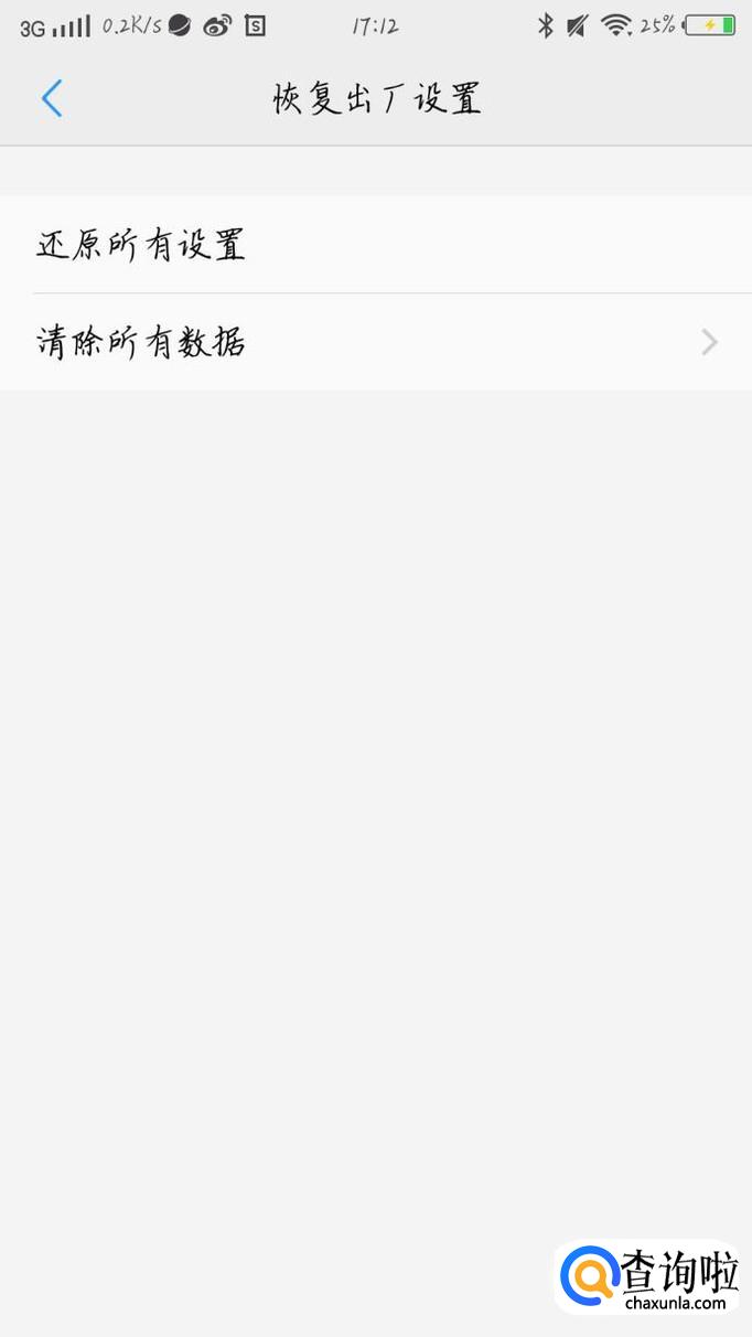 你会看到出现一个新的界面,如图1所示。你可以选择是清除数据还是恢复所有的设置。