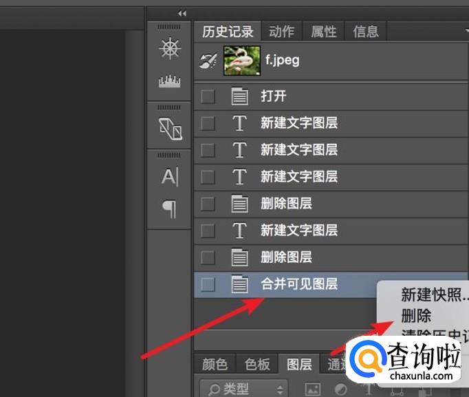 打开后,可以看到一个合并图层的操作,右键点击这个操作,然后点击‘删除’就行了。