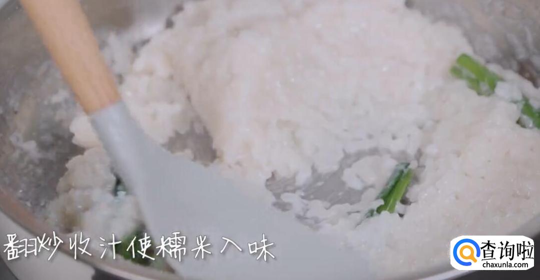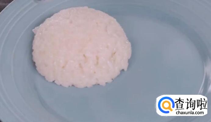 然后将糯米盛出,放入碗内压紧。再翻转过来倒入盘中。