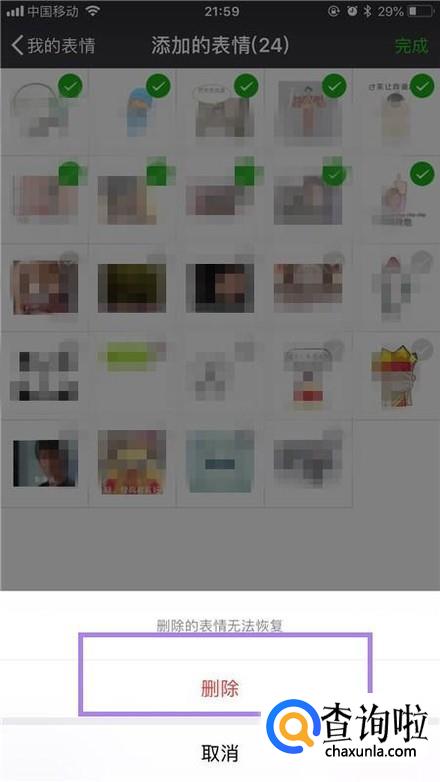 接着选择要删除的表情并点击删除,如下图所示。