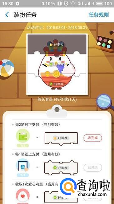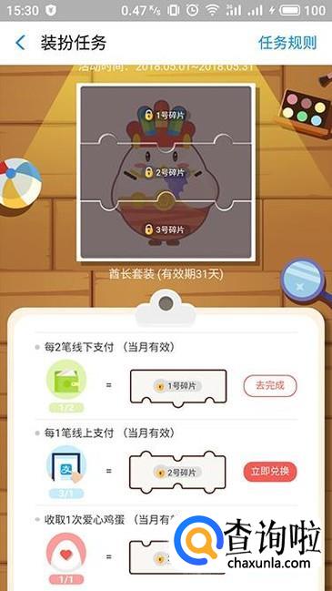 进入装扮任务界面,我们需要凑齐3个碎片之后才能够获得相应的套装,不同碎片的获得方法都有提示,点击“立即兑换”即可。