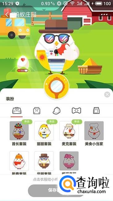 在装扮界面点击相应的服装进行更换之后,点击下方的“保存装扮”即可完成对小鸡的个性化装扮操作。