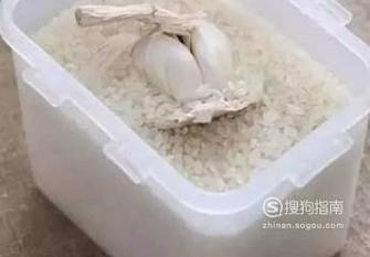 将大蒜放到米缸里,大米可以吸收湿气,没有湿气大蒜就不会发芽了。