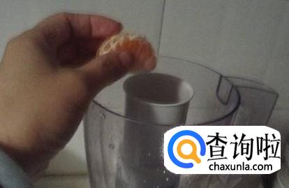 然后再把准备好的榨汁机洗干净,把橘子瓣放进去。