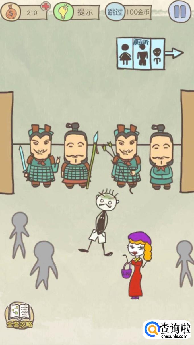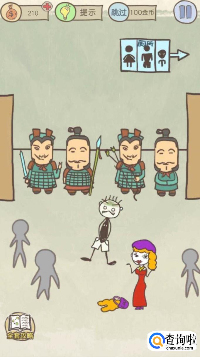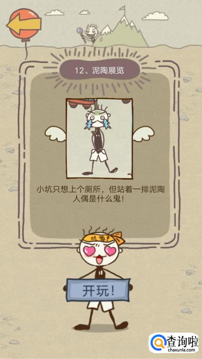 第十二关:首先点击女神的包,然后将掉出来的假发移到史小坑头顶,再去上厕所,泥陶人偶就会自动让路。
