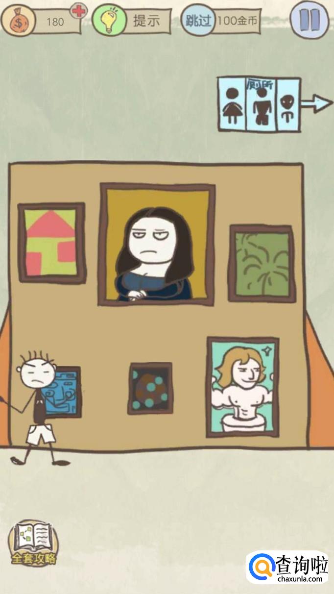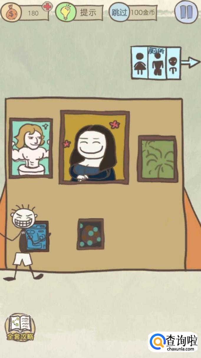 第九关:把右下角的雕像相框移到蒙娜丽莎相框的左边,看到帅哥的蒙娜丽莎会笑哦。
