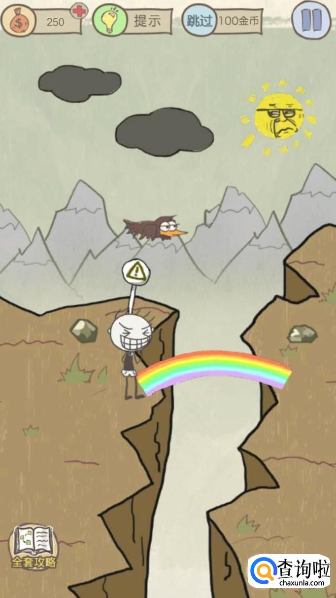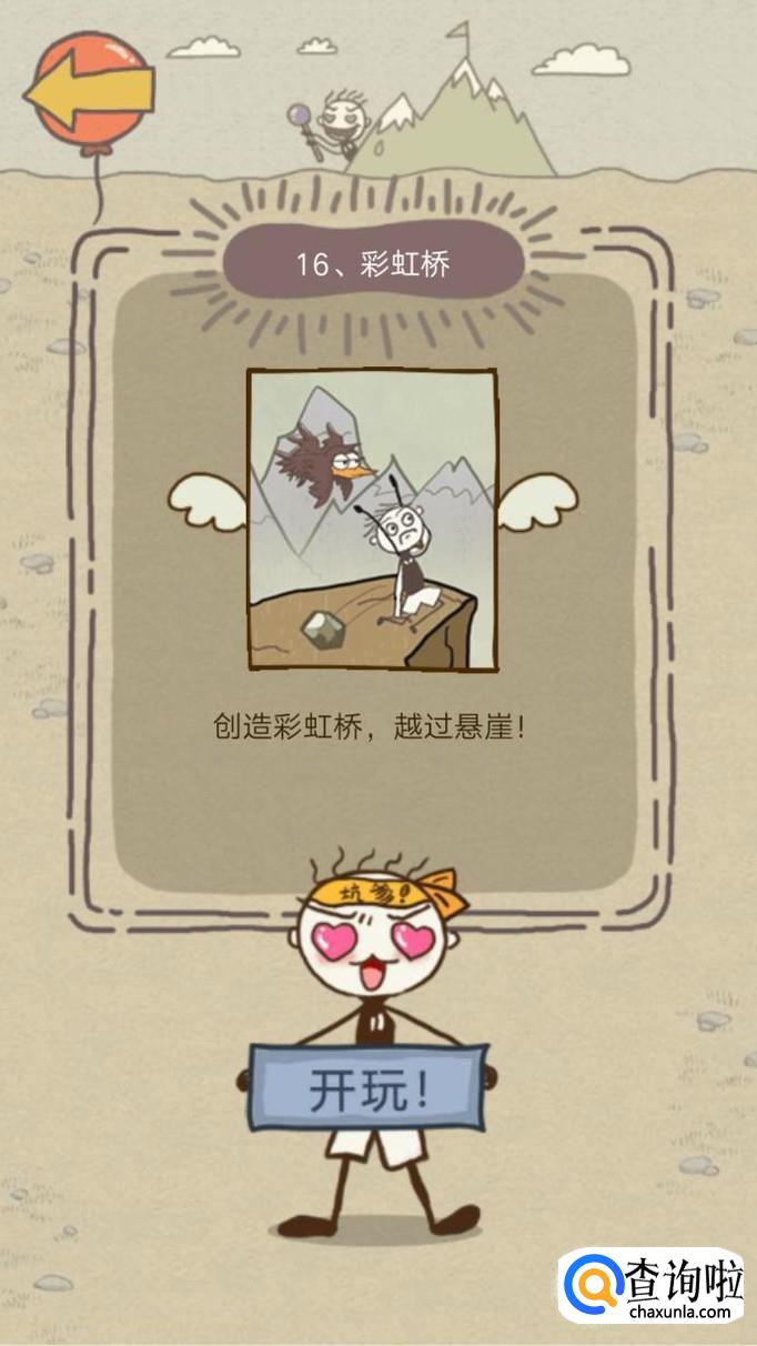 第十六关:先把遮住太阳的乌云移开,然后点击史小坑旁边的水壶,史小坑将水喷出来,就会有一道彩虹桥哦。