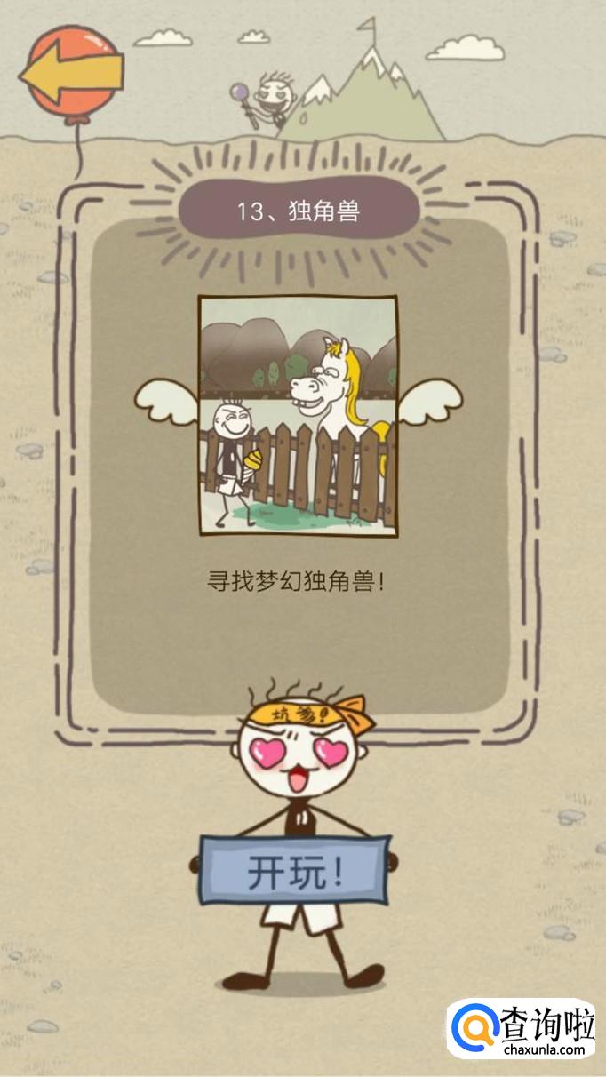 第十三关:点击史小坑手上的冰淇淋,将冰淇淋倒过来,然后把冰淇淋的下半部分移到白马的额前,就变成独角兽了哟。