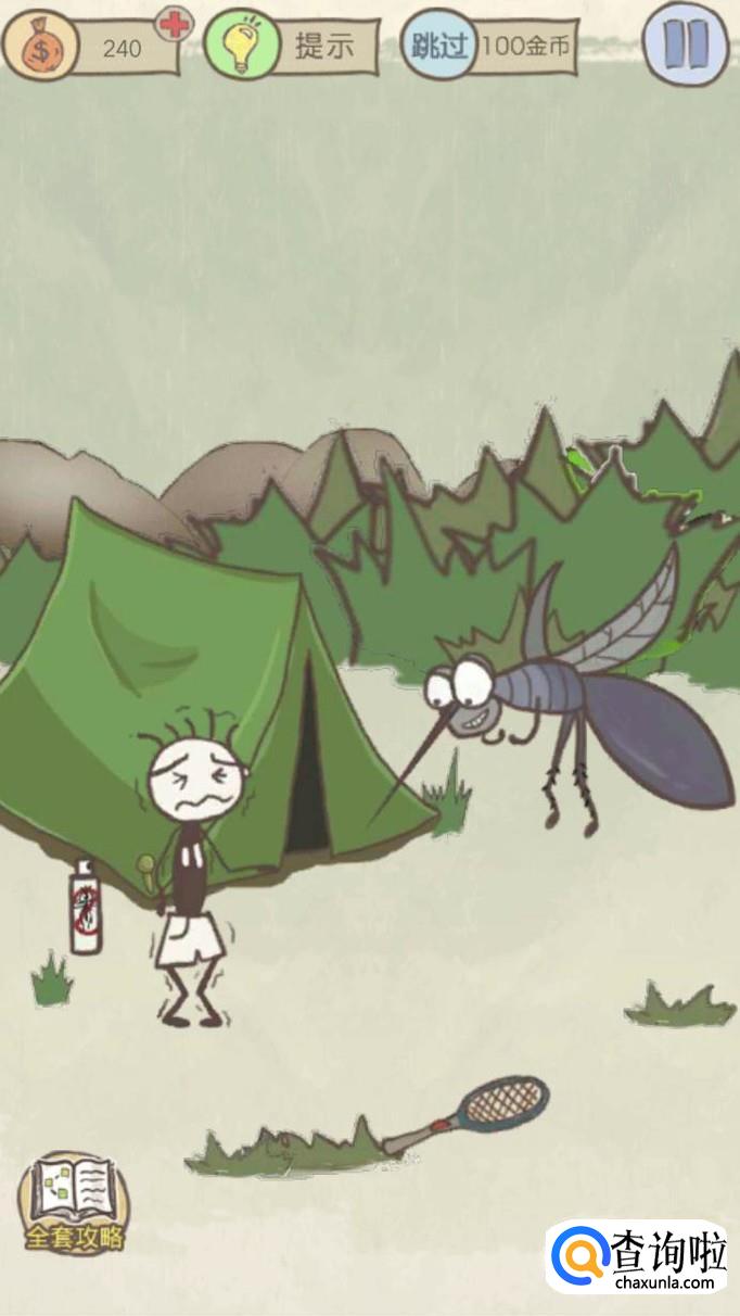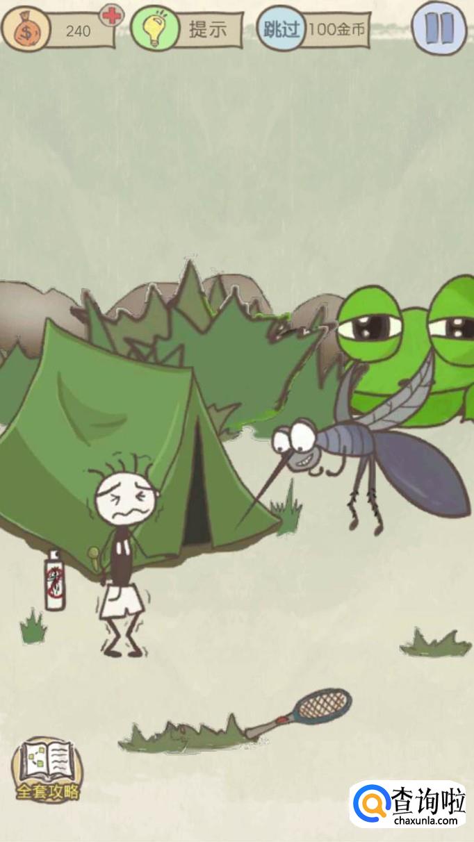第十五关:点击后面的草丛,会出现一只大青蛙,大青蛙会吃掉大蚊子,史小坑就没事啦!