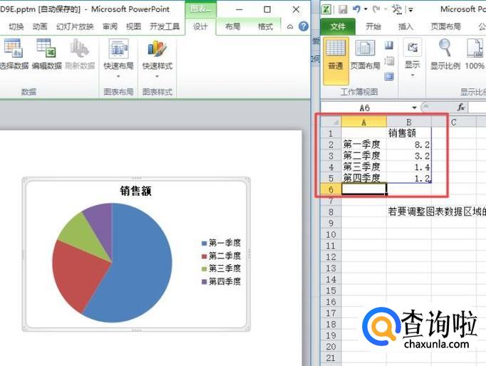 弹出的界面,会有一个excel文档,这个是数据编写用的,我们根据我们的需求进行编写,之后ppt中的饼图也就会相应的变化,也就做出来饼图图表了。