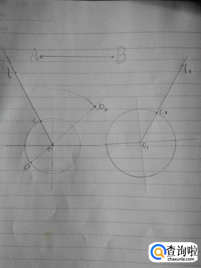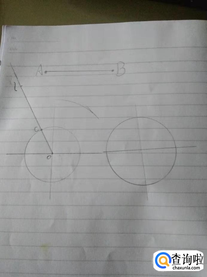 之后再以O为圆心,线段CL为半径,画一段圆弧。