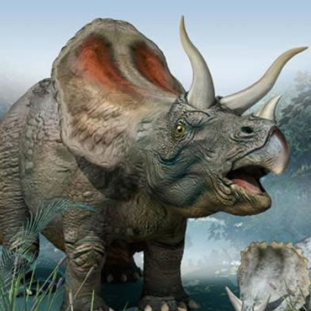 三角龙,鸟臀目角龙下目角龙科的草食性恐龙的一属,主要以植物为食。化石发现于北美洲的晚白垩纪晚马斯特里赫特阶地层,约6800万年前到6500万年前。三角龙是最晚出现的恐龙之一,经常被作为晚白垩纪的代表化石。目前已有两个有效种:褶皱三角龙、究竟三角龙,但还有其他属被命名。三角龙也是最著名的恐龙之一,也是在通俗文化中非常受欢迎的恐龙。