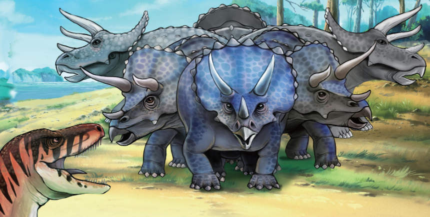 三角龙主要以植物为食。三角龙,鸟臀目角龙下目角龙科的草食性恐龙的一属,化石发现于北美洲的晚白垩纪晚马斯特里赫特阶地层,约6800万年前到6500万年前。