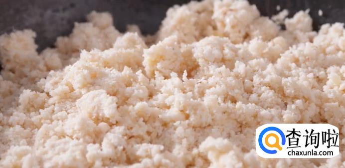 首先将磨好的豆渣用细纱布滤出,挤去豆渣中多余的水分备用。
