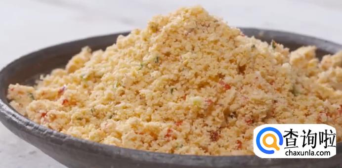 做辣炒豆渣的,先将豆渣用盐抓匀、抓散。
