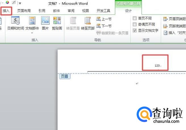 之后我们在页眉处先输入一些数字,然后点击插入;