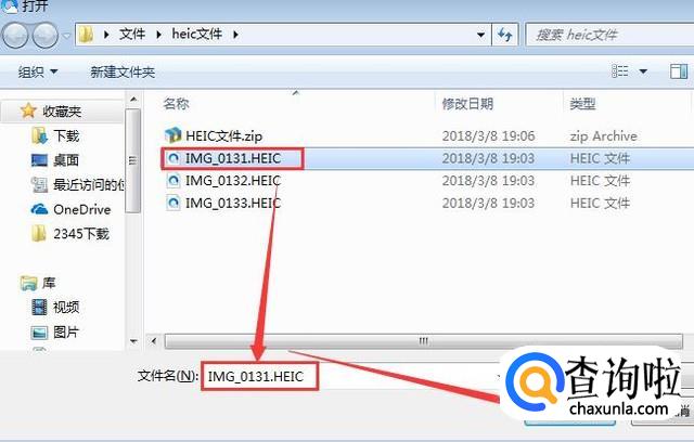 在文件夹里,选择HEIC文件,点击打开。