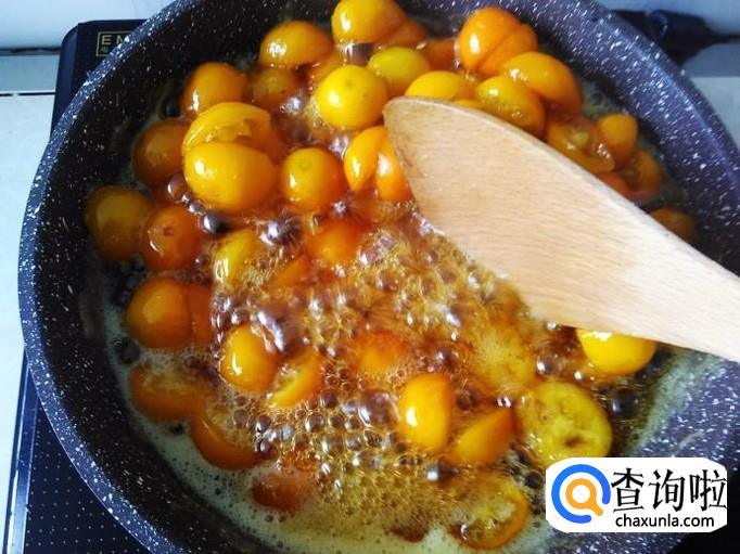 挤完后,继续小火翻炒到水分蒸发完,剩下糖液。