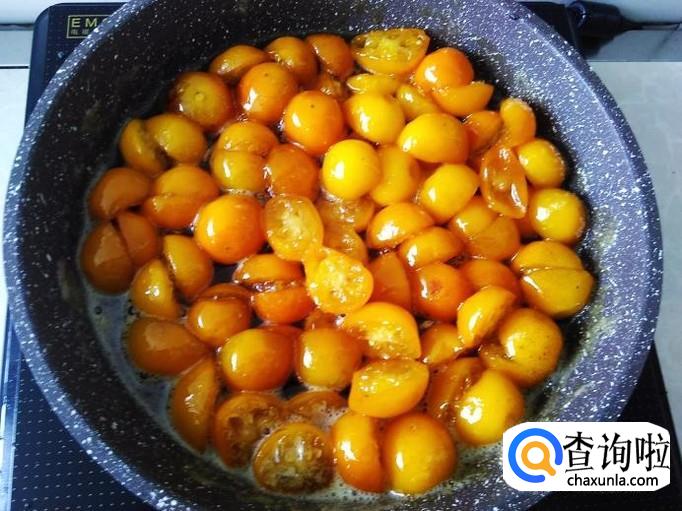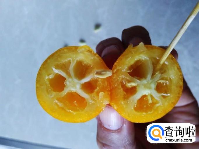 然后把一个个金桔切开,用牙签把籽挑出来干净。