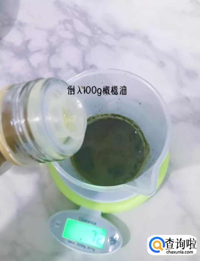 接着倒入100克的橄榄油,如下图所示。