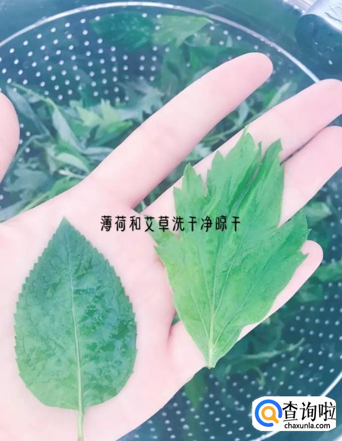 首先将买回来的薄荷和艾草清洗干净,晾干,如下图所示。