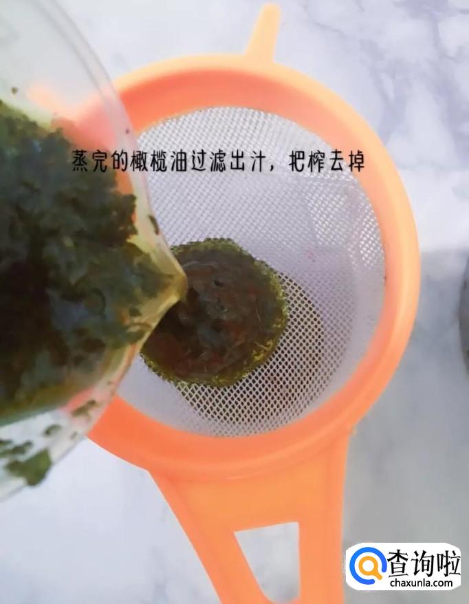 然后把蒸好的橄榄油过滤出汁把渣去掉,如下图所示。