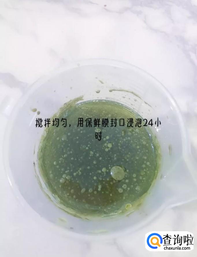 然后搅拌均匀,用保鲜膜封口,浸泡24个小时,如下图所示。