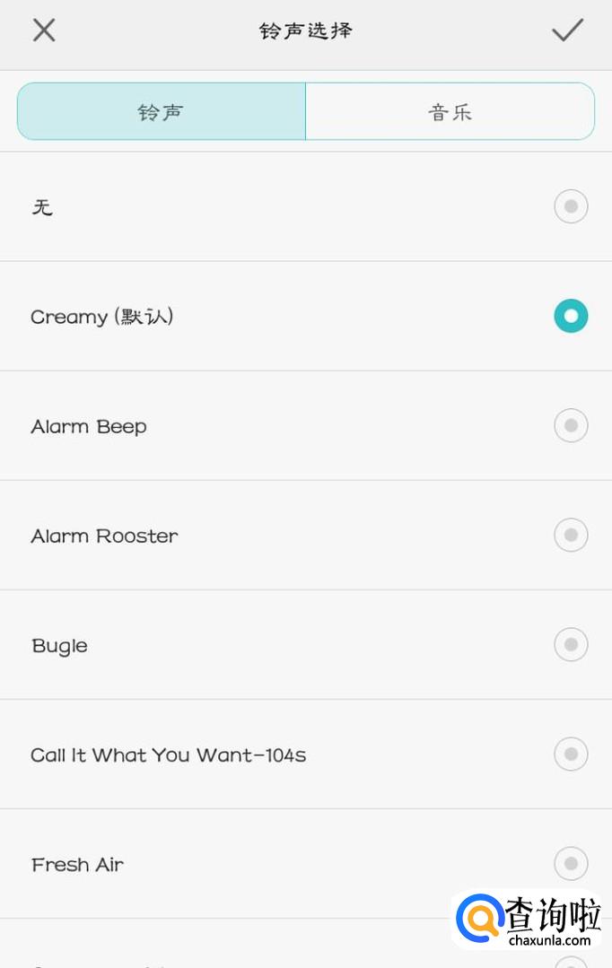 在界面找到“铃声”,点击进入,就可以设置你想要的铃声,里面有系统铃声以及你自己下载的歌曲,这些都可以设置为闹钟铃声。