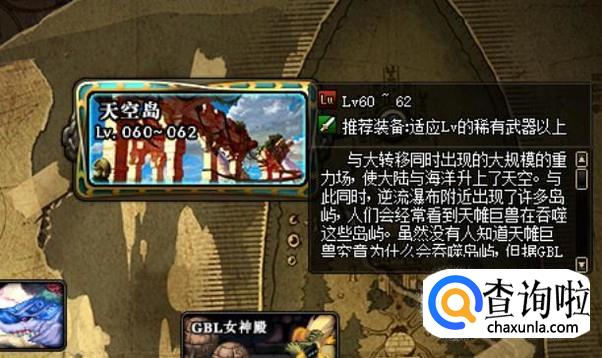 最后给大家介绍一下小编的独家去处—天空岛。55级的假紫上衣,60级的粉武器,还有各个职业的换装左槽,都可以在这里产出。