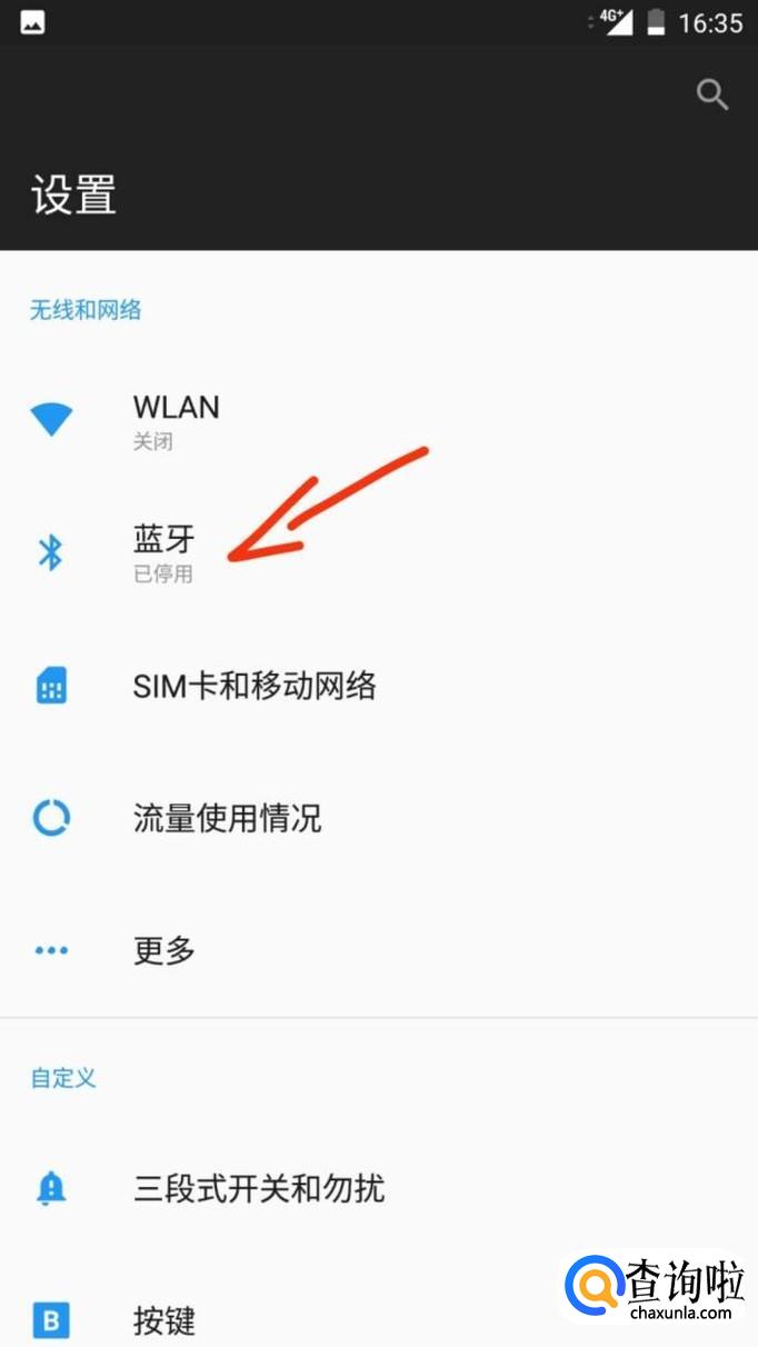 进入到设置界面后,可以看到第二个就是蓝牙,点击“蓝牙”