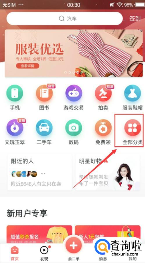 进入转转APP,然后点击第二排的‘全部分类’,如图。
