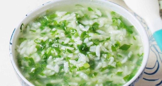 2、粳米洗净置锅内,加水适量,熬至粳米熟时,将菠菜放入粥中,继续熬一会儿停火;再放入盐调味即成。