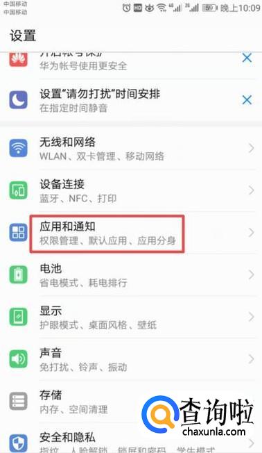 弹出的界面,我们点击应用和通知;