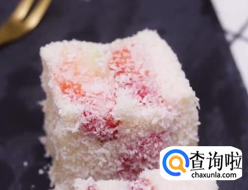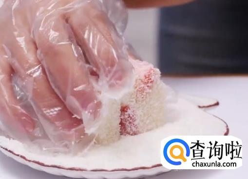 用奶块在椰蓉上沾粉,摆盘就好了。