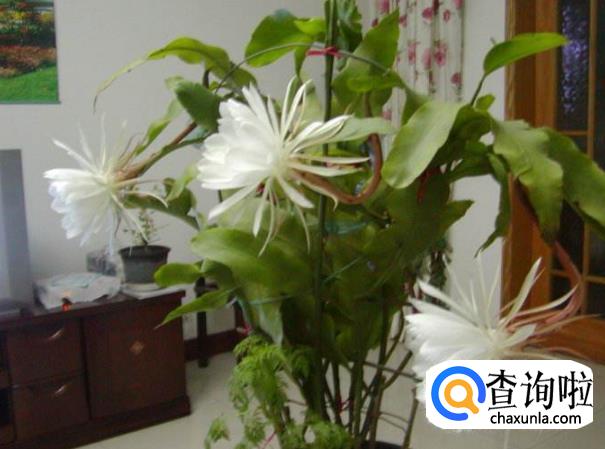 控制花期:为了改变昙花夜晚开花的习性,可采用“昼夜颠倒”的办法,使昙花白天开放。当昙花花蕾膨大时,白天把昙花移到黑暗的暗室或用黑色塑料薄膜做的遮光黑罩子罩住,不要有一点透光,而晚上从8时到次晨6时,则用灯光照射,这样处理7~8天,昙花就可按照人们的意愿,在白天开放。