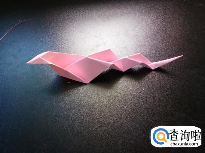 如图所示,将身体部分波折完后,将头部尖角向内折,画出眼睛,就算大功告成了。