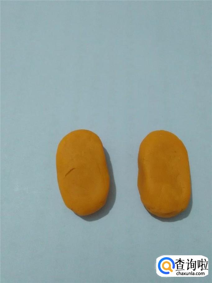 用两块同样大小的彩泥捏成椭圆形。